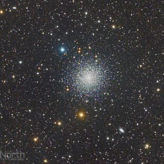 Messier 13, The Great Globular Cluster in Hercules. This globular star cluster contains several hundred thousand stars packed in an area estimated to have a diameter of 145 light years. The globular cluster is approximately 25,000 light years from earth. There are an estimated 150 globular star clusters in our Milky Way galaxy.